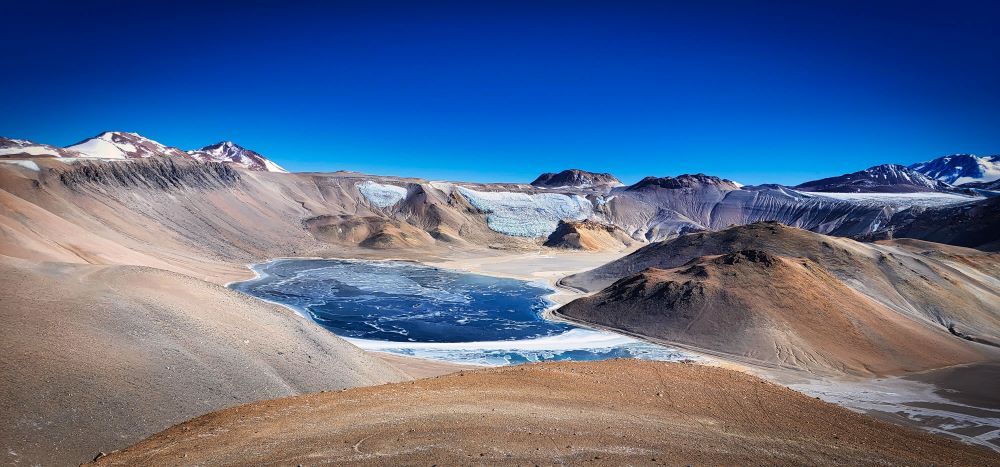 El Cráter Corona del inca, es un cráter volcánico que contiene la laguna más alta del planeta, rodeada de formaciones glaciares.